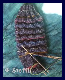 Ganz wenige Reihen gab es gestern am Aranmor. Und die Mustersocken dümpeln auch ein wenig.