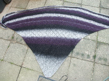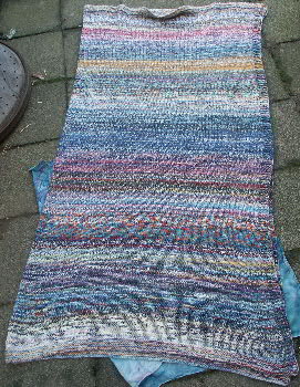 Nachdem das Kaunituch fertig ist, und ich nix Neues beginnen wollte, kam die Restedecke wieder zum Einsatz. Zum Abschluß des Strickabends gab es noch 10 cm am Schal dazu.